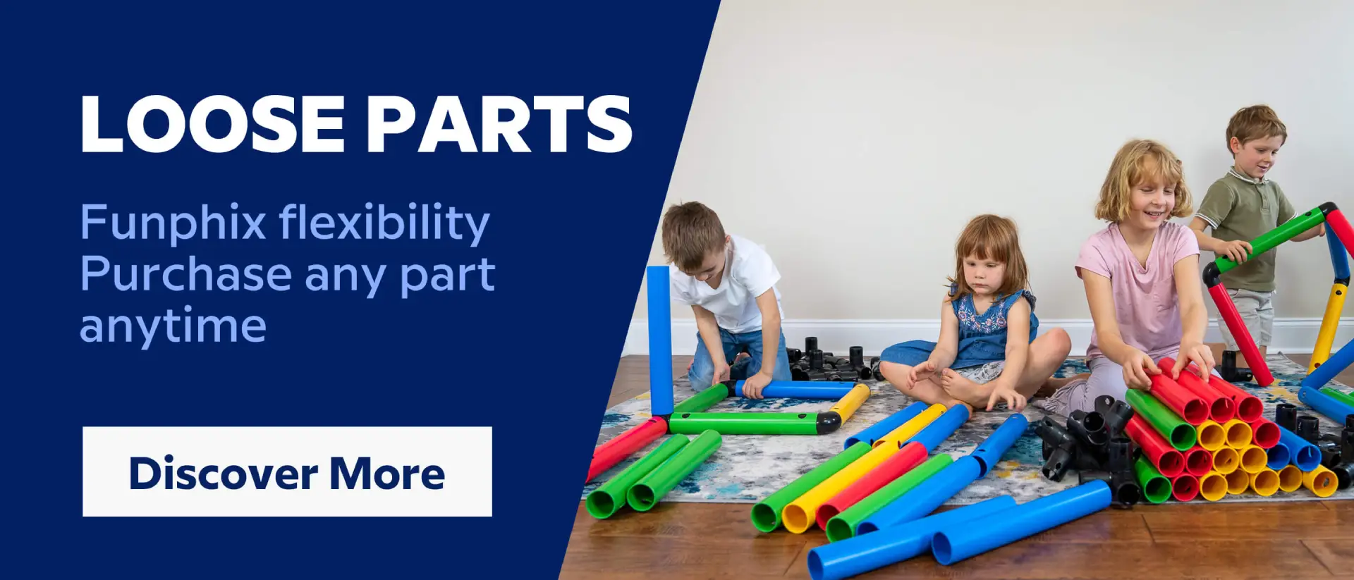 Funphix’s easy-to-use connection system means adults and children alike can build amazing life-size play equipment safely and quickly. It’s also super easy take apart, ready to build another piece of exciting kids play equipment and climbing toys.