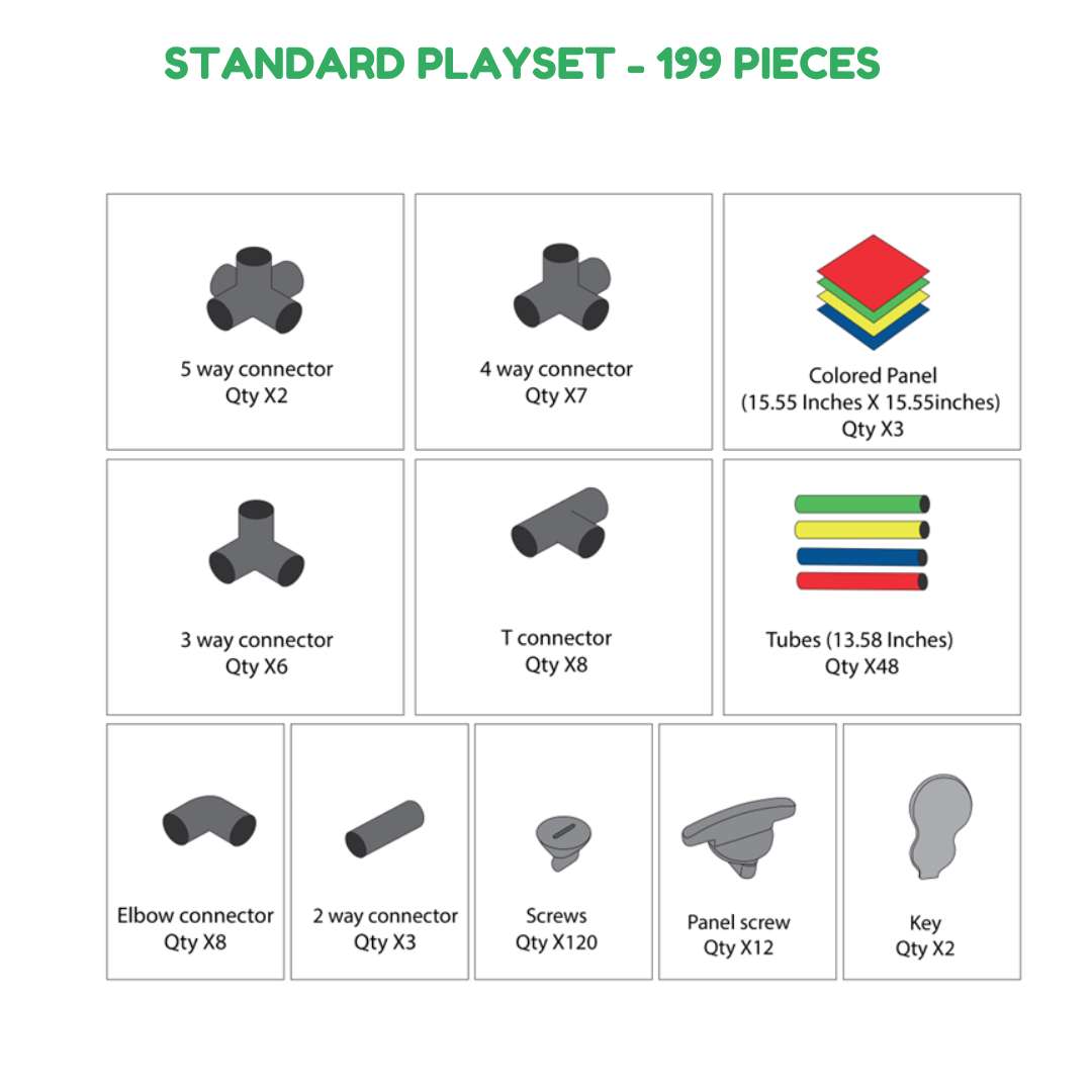 ✅ SUPER EASY TO ASSEMBLE AND DISASSEMBLE. Simply put a tube over a connector and insert a screw, then use a key to turn the screw 90-degrees to lock the tube with the connector. To detach a tube from a connector, first remove the screw by turning it back 90-degrees, then turn the tube slightly and remove from the connector. A comprehensive instruction manual which outlines the basic assemblies/fun structures and safety warnings is included with every builder toys set.