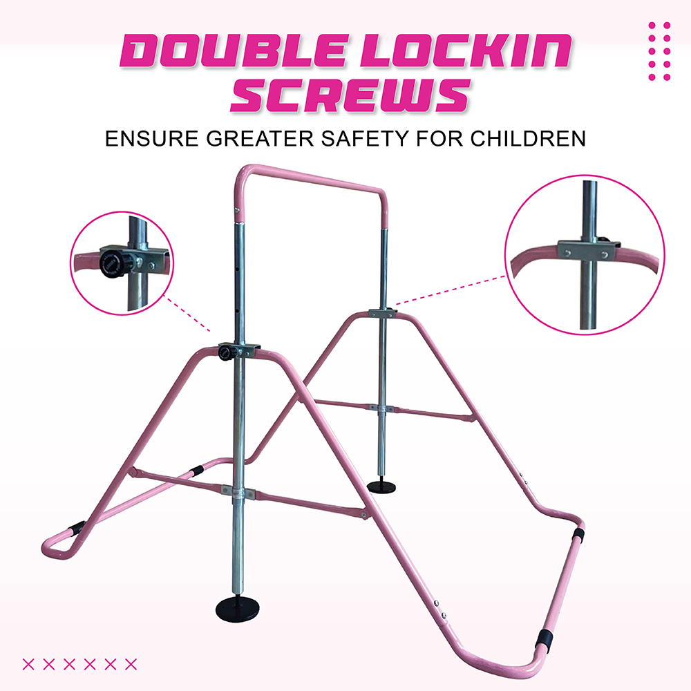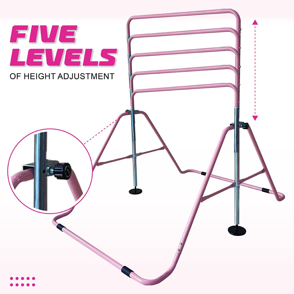 Funphix Pink Gymnastics Training Bar for Kids with 5 Height Adjustment Level