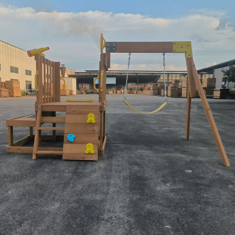 Funphix Lookout Post Outdoor Wooden Playhouse, Buildable Kids Backyard Playset with Climbing Ramp